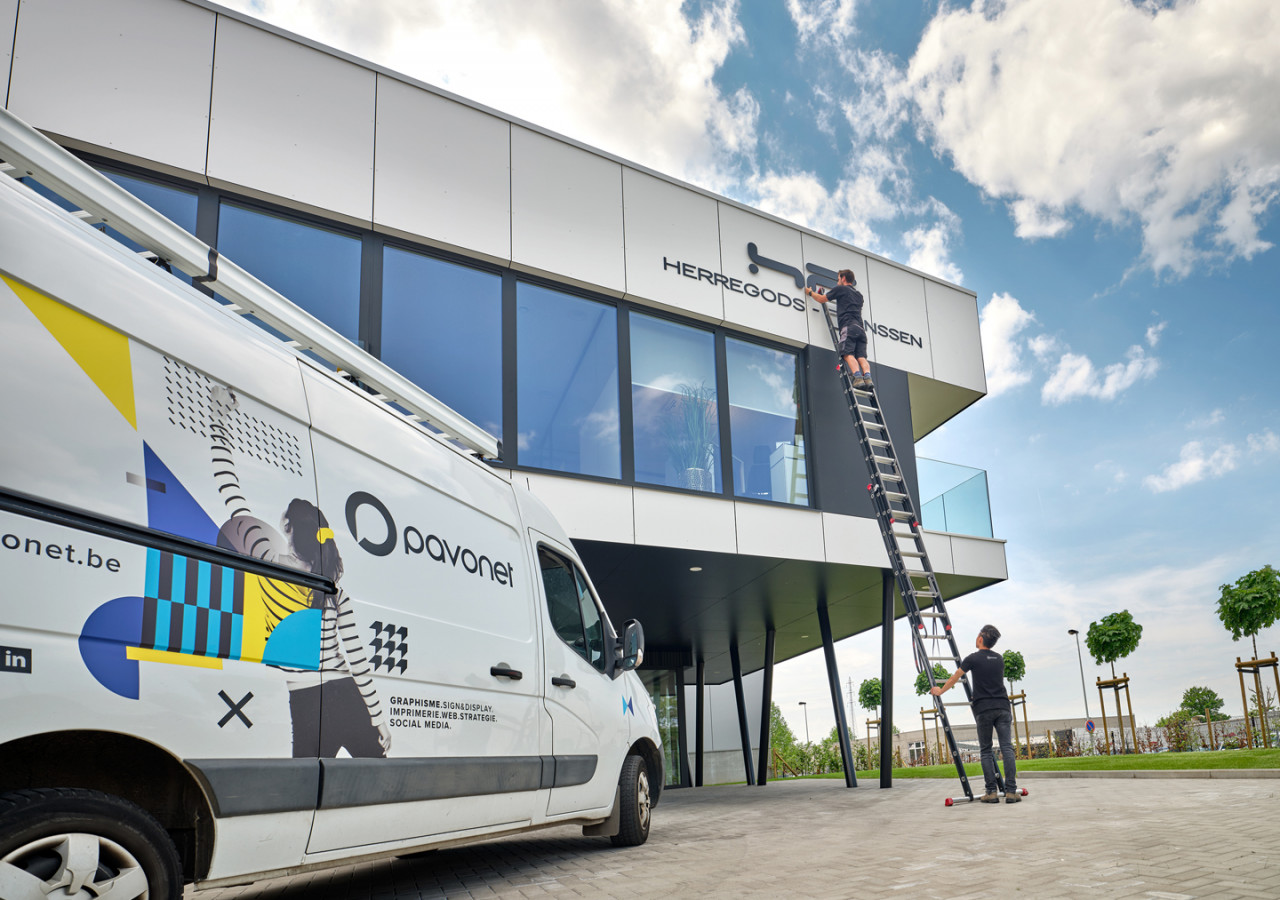 Sign ist der leider nicht sehr geläufige, aber einzige Oberbegriff für alles, was mit Beklebung und Beschriftung von Fassaden, Wänden oder Fahrzeugen zu tun hat.