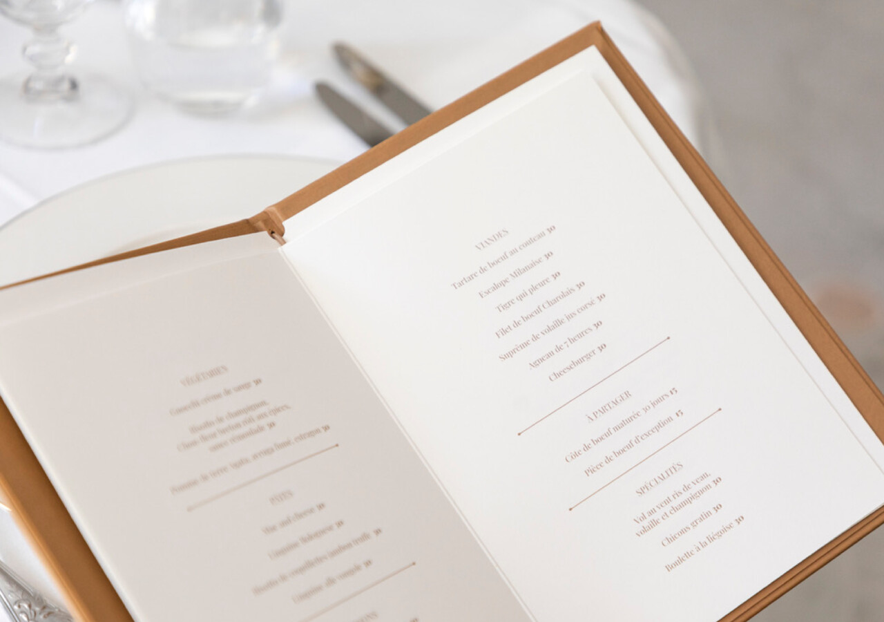 - Print: Visitenkarten mit Golddruck und Prägung, Willkommenskarten mit Prägung, Keycard-Holder, Briefpapier und Umschläge, Notizbücher mit Prägung, Luggage-Tags, Keycard-Tags, Glasuntersetzer, Menükarten, Broschüren.